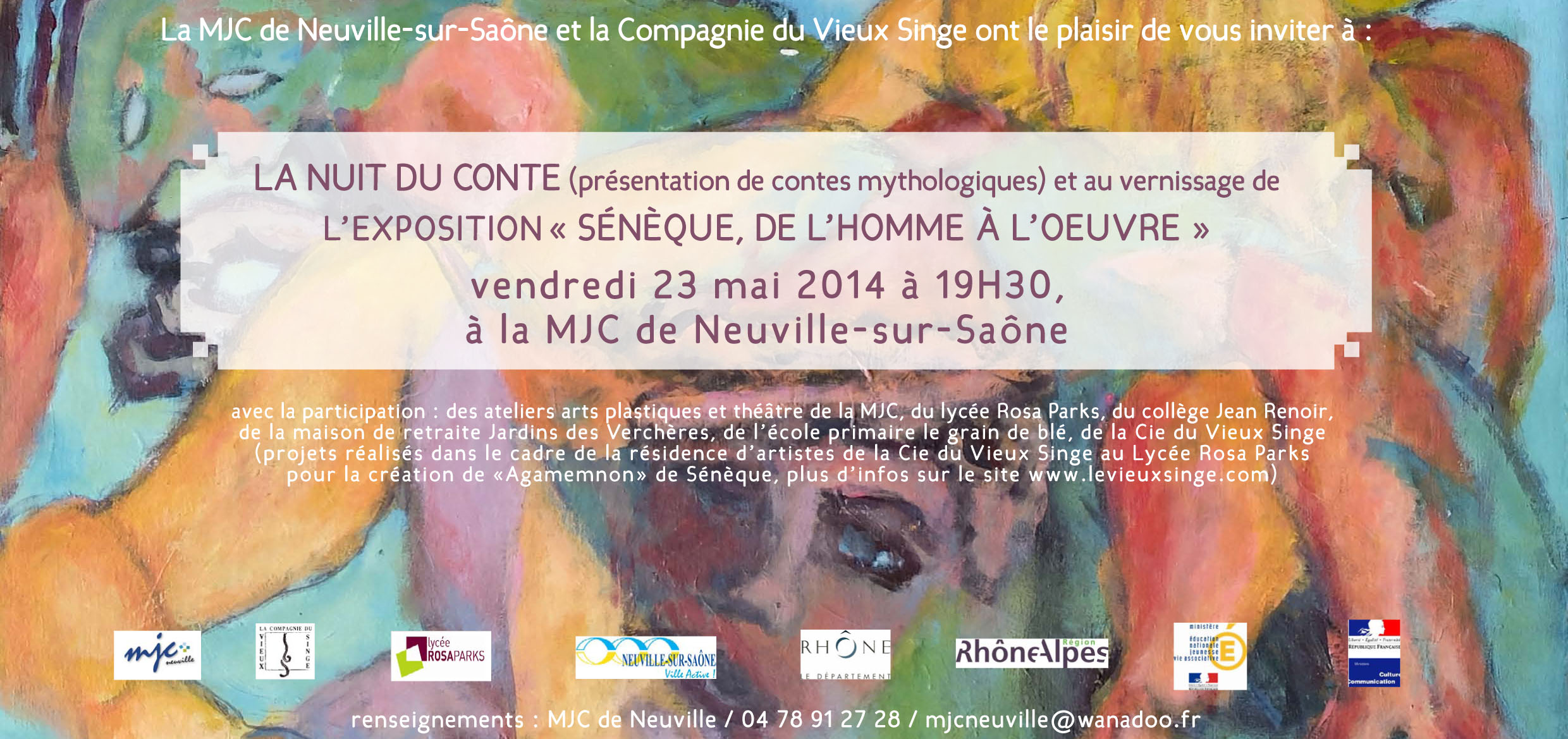 Exposition dans le hall d’accueil MJC « Sénèque de l’oeuvre à l’homme » où sera présenté le travail sur la Mythologie grecque réalisé dans les cours de peinture des lundi et jeudi après-midi, lundi, mardi et jeudi soir ainsi que jeudi matin.